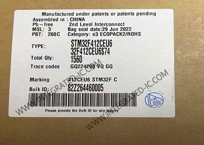 STM32F412CEU6 माइक्रो कंट्रोलर MCU 100MHz 32Bit माइक्रो कंट्रोलर IC UFQFPN48 एम्बेडेड MCU