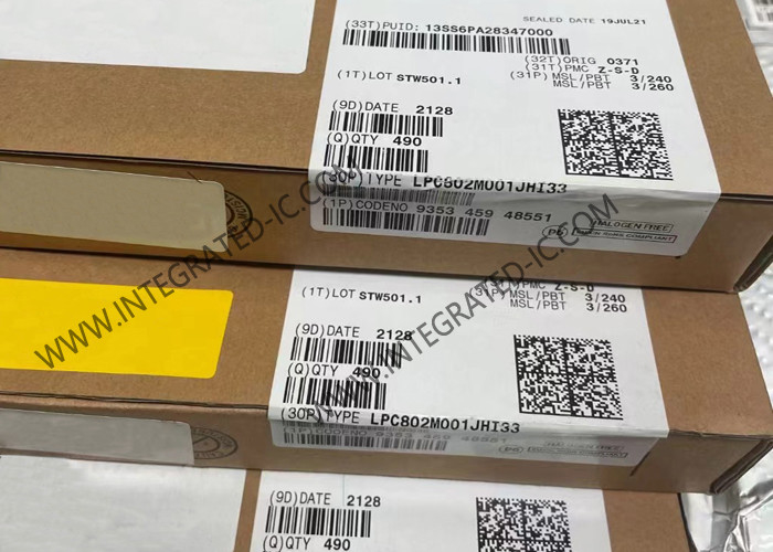LPC802M001JHI33 में एक पावर-ऑप्टिमाइज्ड कोर, लोकप्रिय पैकेजों में छोटा पदचिह्न, और इसके अलग-अलग पावर रेल के लिए स्तर शिफ्टिंग विकल्प हैं।LPC80x के परिधीय पूरक में एक CRC इंजन शामिल है, I2C-बस इंटरफेस, दो तक USARTs, एक SPI इंटरफेस, capacitive स्पर्श इंटरफेस (कैप स्पर्श), एक बहु दर टाइमर, आत्म-जागृति टाइमर, एक सामान्य प्रयोजन 32-बिट काउंटर/टाइमर, एक 12-बिट एडीसी,एक 10-बिट डीएसी, एक एनालॉग तुलनाकर्ता, स्विच मैट्रिक्स के माध्यम से फ़ंक्शन-कॉन्फ़िगर करने योग्य I/O पोर्ट, इनपुट पैटर्न मैच इंजन, प्रोग्राम करने योग्य लॉजिक यूनिट (PLU), और 30 तक सामान्य प्रयोजन के I/O पिन।